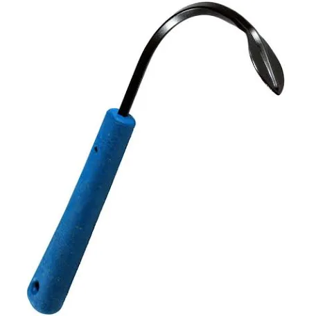 Double Hoe - This tool has a hammer-like handle with a horizontal hatchet edge and a 3-tine weeder edge at the end. From a fellow MGV: the hatchet blade cuts through tough roots, can be used as a weeder or digger for planting, stirring in nutrients and smoothing the soil after, using only one tool, keeping her from bringing multiple tools to use and lose them. This also is a larger tool, so more difficult to misplace.